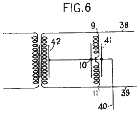 10, 11 form ratio arms bridged across the conductors 38, 39 of
